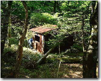 30分ばかりして、また二人はいってきた。年取った二人は大普賢岳で、遠くの山を指差しながら、あれが八経ヶ岳、その右が弥山・・・と説明していた案内人たちであった。今夜は一緒に泊るから宜しくと挨拶し、荷物を降ろし食事の準備に取り掛かった。 Wさんの料理はとにかく品数が多い。極めつけはデザートにフルーツの缶詰まで出てきた。仕上げのコーヒーには各人にかきまわす耳掻きみたいなスプーンまで付いていた。ちょっとした料理店より豪華な雰囲気の山小屋のひとときである。 食事が終わるころ、また若い二人が入ってきた。一人はさっきザックを置いて出ていった男である。へたばった同僚は隣の部屋に休ませ、案内人の準備した食事を一緒になって食べ始めた。案内人は薪をくべ火の勢いを強くして部屋を明るくした。部屋中に煙がこもり炎で影が揺らぎ異様な雰囲気だが何となく楽しいものがこみ上げて来る。 私たちは食事が終わると明日の準備にかかった。水場から汲んできた水はそのまま飲料水に使わないほうが無難である。明日飲む水は小さなコッヘルで沸騰させた。4人分の水筒に詰めるのにかなりの時間がかかった。 隣のグループはアルコールが廻ってきたのか声高に話しが弾んできた。 Tさんは今朝4時の出発で睡眠不足だから早く寝ると言って毛布に潜り込んだ。隣の話し声は私たちを無視したように高く、否が応でも聞こえてきた。 先輩格の案内人達は若いカメラマンにヒマラヤ、チベットの山の経験を話し、日本で有名な登山家や山岳写真家の話しをしている。若いカメラマン達はいずれ海外まで出向いてよい山岳写真を撮りたい、など語り合っている。 こちらの3人はどちらかといえば口数の少ないおとなしい方で、ただ隣の会話を聞いているだけであった。話しを聞いていても仕方ないから寝ることにした。土間の焚き火を頭にして寝る。もちろん話し声が聞こえないように耳栓をして夢の世界を目指した。 5月25日はれ 5時10分に起きた。もう外は明るかった。風が強く寒いので雨衣を取り出して着た。隣の連中はまだ寝ている。昨夜は遅くまで語り明かしていたに違いないが私は耳栓の助けを借りてぐっすりと眠られた。 焚き火の灰が降りかかっていたのか頭に触ると白いものが落ちてきた。鼻の穴に指を突っ込んでみた。案の定、指に黒いススが付いてきた。この調子だと顔もススで黒くなっているだろうと想像できるが貴重な水だから顔を洗うわけにはいかない。 乾燥ご飯にコンロで沸かした熱湯を注ぎ4人分の昼弁当を作るWさんの手つきを眺める。Wさんが今回の山歩きでは女房役になってしまったようだ。あとの3人は食事の準備はWさんに任せきりで加勢しようともしない。ただ出来上がるのを待っているだけである。 食事の後、ゴミをビニール袋に詰めてそれぞれが持つことにした。ザックの後ろにくくり付けた。 カメラマンや案内人達に挨拶をして小屋を出た。 今日も快晴だ。1500mの標高のためか寒く感じる。雨衣を着たままザックを担ぐ。 今日のスタートは、昨日と同じようにWさんが撮ってくれる記念写真から始まった。 小屋から南に向って下って行く。左から朝陽が差し込みカエデやブナの新緑がひときわ燃えるように浮き立っている。冷たい空気を吸い込み深呼吸をすると体中が眠りから覚める。昨日の疲れは残っていないようだ。