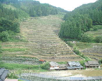 10分の休憩で下山開始。下りは一部分別のコースを通ったがここもかなりの急な坂であった。14時40分バスに乗り込み、地元の温泉『きらら』へ向った。 入浴のあと茶の文化館で一腹する予定になっているが私を含め4名は温泉をパスして茶の文化館へ直行した。 御食事処『星野茶寮』で、緑豊かな耳納(みのう)連山、棚田百選の一つ広内・上原の棚田を眺めながら生ビールを楽しんだ。棚田はまだ田植えの前で、横に帯状に延びた石垣が谷底から尾根まで水平に積み重なっている。青田が伸びた夏、黄金色に実った稲とあぜに咲く彼岸花の季節は、一段と見応えのある棚田風景だろうと想像した。 1時間が過ぎたころ入浴組の一行20人がやって来た。お待ち兼ね「しずく茶」をいただく順番になった。 では『しずく茶』とは一体何なのか、どんな茶道なのか、しずく茶と一緒にお盆に載っていた「しおり」で説明しよう。 @茶碗に玉露を茶さじ1杯程度を山形に入れます。Aそこに45℃前後まで冷ましたお湯を周りから静かに注ぎ、蓋をして2分待ちます。B茶碗を左手にのせ、右手で蓋を少しずらし、そのまま軽く蓋を押えて、茶碗と蓋の間からこぼれ出る玉露のしずくをすすります。舌の上で転がすようにして、トロリとした玉露の旨味と香りをゆっくりと味わってください。C2煎目は60℃前後のお湯20ccを茶葉の上から注ぎます。蓋をして今度は1分ほど待ちます。1煎目より少しまろやかな味わいが楽しめます。D3煎目は、2煎目と同温のお湯を同じように注ぎます。3煎目以降にお菓子を召し上がることをお勧めします。E4煎目は、80℃のお湯をたっぷりと注ぎ、茶の葉が開くまで待ちます。熱いお茶を注ぎますと、煎茶のようなさわやかな渋みが出てまいります。1煎目とはまったく違ったお茶の味わいです。F飲んだ後の茶の葉は酢醤油をかけてお召し上がりいただけます。玉露の茶の葉はやわらかく苦味がありませんので、野菜感覚でおいしく食べられます。またお茶が健康に良いことはよく知られていますが、茶の葉に含まれる成分の中には、水に溶けないものも多く、まるごと食べることによりこれらを摂取できます。 と書いてある。
