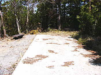 | 山頂手前、50mぐらいの所に展望台がある。ここからは北と東のほうは樹木で遮られ展望は利かない。 西は、諫早市街、大村湾、西彼杵半島が見えるはずだが霞がかかりはっきりしない。南方向は、干拓地と潮受け堤防がかすかに見えた。島原半島は霞の中であった。 展望台で昼食にする。結構西からの風が強く弁当を包んでいたビニールが吹き飛ばされそうになりザックを乗せ重石代わりにした。風で身体が冷えてきた。上着を取り出し着込んでからゆっくりと食べた。 そのうちに誰か登って来るかと期待していたが一時間たっても姿はなかった。 さすがに下界の選挙の喧騒もここまでは届かない。 |