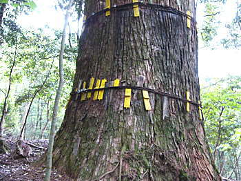 ![]() 歩き出して数分もしないうちに巨杉に出会う。 |