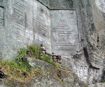 崖に彫り込まれた梵字を見たとき、やっと当時のことが浮かんできた。樹木の繁った樹間に潜むように見えたあの梵字の形である。夏の暑いときであったが薄暗い繁みのなかにセセラギノ音がして湿気の多い空気はひんやりと冷たかった。その冷ややかさと梵字は重なるのである。
