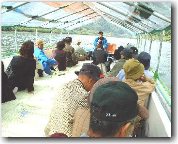 ☆ はじめに 人はどうして 北にあこがれ 人はどうして 旅に出るのか 流れる雲の 地図をたよりに 私もまた 北を旅する。 ・・・・・ ・・・・・・ これはみちのくに来て4日目、十和田湖遊覧船に乗船する際に貰ったパンフレットの中の一節である。 今回の旅は、近畿日本ツーリストが企画したツアーで『みちのく紅葉八景』のタイトルがついている。このツアーはフルムーンパスを使って夫婦一緒に旅をするという条件がついていた。 私は好きな山歩きで家を留守にすることが多い。いつも留守番役の妻に感謝の意を込めての参加であった。 ☆ 最上川の船下り(10月16日 雨時々くもり) 昨夜、山形駅に着いたのは18時40分。改札口を出ると黒いスーツ姿の男性の後に付いて駅前広場に出た。あたりは暗くネオンのきらめきで街並みの様子をうかがい知ることができた。駅前広場にホテルの送迎バスは待っていた。 夫婦18組36名は2台のマイクロバスに乗って、最初の宿泊地、天童温泉に向った。改札口まで出迎えに来てくれていたスーツ姿の男性はバスの運転手でもあった。 昨夜、夜半からから降り出した雨は夜が明けても降っていた。秋の空は天気予報とは違い気まぐれである。雨だから明日に延期というわけにはいかない。いよいよ強行軍のスタートである。 ホテルを出発して船下りの乗船地古口に着いたのは9時半。1時間半バスに揺られながら、川の流れや山の景色を眺めていた。 山は行けども行けども紅葉の気配はない。最上川の流れはゆったりとして、ここが日本三大急流の川だろうかと疑いたくなるほどである。 乗船地に着いたとき薄日が差し雨もあがっていた。遊覧船は何艘も係留されていて、船の名前はすべて『芭蕉丸』、頭に第1、2,3、・・・・と冠がついていた。幾組もの団体が押しかけていたがグループ毎に一艘を貸切っての乗船となった。 乗船する間際、船頭笠に法被を着たおじさんに写真を撮らせてとお願いしたら直立不動の姿勢でかしこまってしまった。 私たちの船の船頭さんもガイドさんも、法被は着ていたが笠は被っていない。何となく張り切った気分をそがれた。 いよいよスタート。船外機のエンジンの音がして動き出した。櫓をこぐ姿を期待していたがこれまた当て外れ、松尾芭蕉さんもあの世で嘆いているかもしれない。この現状を芭蕉さんはどう詠むだろうか。 ガイドさんは舳先に座りお客に向って案内をはじめた。 最上川の流れは、表面上はゆったりとしてどちらが川下かわからないほどです。これがどうして日本三大急流なのかと思うでしょう? 水深2、3メートル以下の所では流れが速いのです。またこれから川下12kmの区間には橋はありません。だからこの船は橋の下は潜らないのです。 珍しいでしょう? 10分も下ったかと思うころ、だれも住んでいないはずの向こう岸に家が見えてきた。 「あそこはトイレ休憩の場所になっています。船を止めますから用を済ましてください」 乗船する前、バスのガイドさんからトイレは船に乗る前に済ましておくようにと念を押されて今のところ用はないのだが、と思っていると、 「トイレ休憩は口実で、みなさんにお土産を買っていただく売店でございます」ときた。 お土産ばかりではなく、ビール、焼きイカ、鮎の塩焼き、きりたんぽなど等酒肴が揃っている。ガイドのうまい話術に乗せられて繁盛した。 再び船は動き出した。 雨が降り出しガイドさんは屋根から舳先にかけてビニールで覆った。雨はすぐあがった。 ガイドさんは案内を続けた。 「皆さんご存知の有名な俳句『さみだれをあつめてはやし最上川』はこの川でございます。川くだりに来ていただくお客さんは外国の方もいらっしゃいます。わたしどもは英語、韓国語でも案内しています。では今日は英語で俳句を紹介しましょう」 わざとなのか、本気なのか、言葉が流ちょうでない。 みんな笑った。 川下りの終わりに近付いたころ、最上川音頭を歌ってくれた。日本語で唄った後、 英語の俳句と同じで歌っている若いガイドさんも何を言っているのかわからないふうであったが笑いと大喝采が湧きあがった。 唄い終わったころ、船は船着き場に近付いていた。 紅葉の見ごろには出会えなかったがガイドさんのおもてなしで川下りは充分に楽しめた。 |
