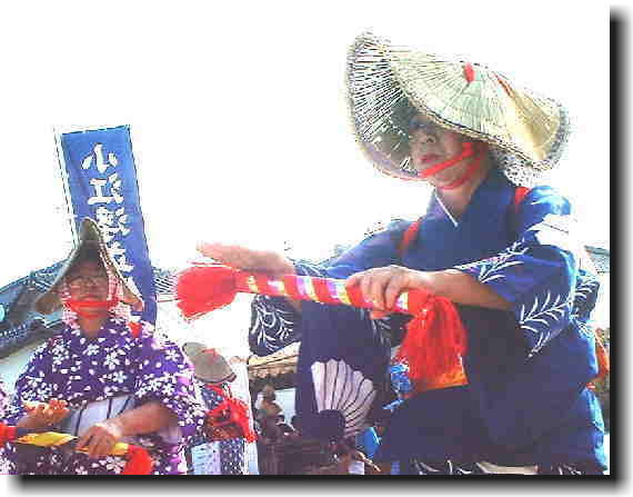 菅笠は、見物人には涼しそうに映ったが踊り子さんの顔には汗がふき出ていた。