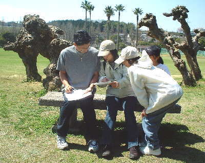 まだコース5KMのうち3分の一を歩いただけなのに、意外に疲れる。 のんびりと歩く気分にならない。辺りをキョロキョロと見ながら状況を記憶するのに忙しいからだ。 スタート前、りーダーは「のんびりと花を見ながら歩きましょう」と言ってくれたが、いつの間にか全員問題を解くのに懸命になっていた。 |
